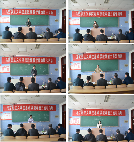经过前期选拔,徐琪、王利珍、赵耿浩、李雯雯、张苗、李哲六位老师围绕思政课教学内容,结合传统教学方式,进行了15分钟教学展示。在教学展示中,各位老师聚焦重点,抑扬顿挫、松弛有度,展现了马院教师扎实的基本功、深厚的学识和良好的精神风貌。