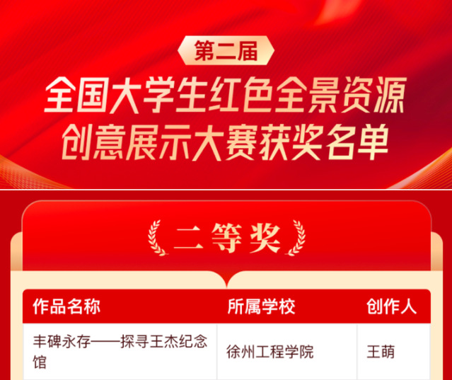 近日,第二届全国大学生红色全景资源创意展示大赛结果揭晓,我校williamhill英国教师安克杰指导的实践教学作品《丰碑永存——探寻王杰纪念馆》荣获大赛二等奖。