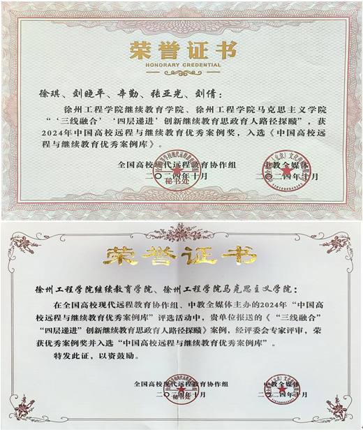 10月31日-11月1日,2024(第十届)中国高校远程与继续教育大会在北京召开。大会由中国成人教育协会、全国高校现代远程教育协作组指导,中教全媒体主办。我院徐琪老师参会。为更好推动我国教育事业的蓬勃发展,发挥优秀榜样作用和影响力,推广高校远程与继续教育典型经验和案例,大会开幕式上隆重举行了“2024中国高校远程与继续教育优秀案例库评选活动”颁奖典礼。我院报送的《“三线融合”“四层递进”创新继续教育思政育人路径探赜》教育案例,荣获“2024中国高校远程与继续教育优秀案例奖”,并入选《中国高校远程与继续教育优秀案例库》。